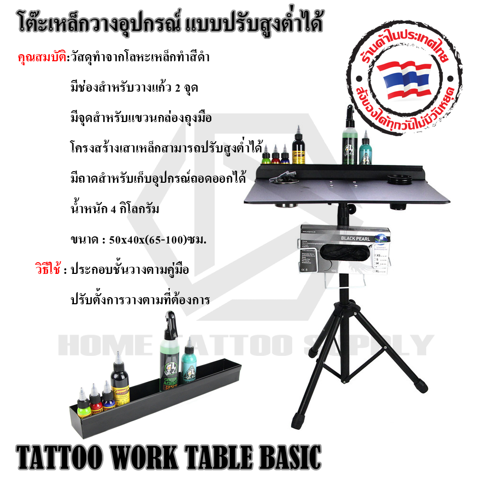 โต๊ะเหล็กวางอุปกรณ์ แบบปรับสูงต่ำได้ (TATTOO WORK TABLE BASIC)